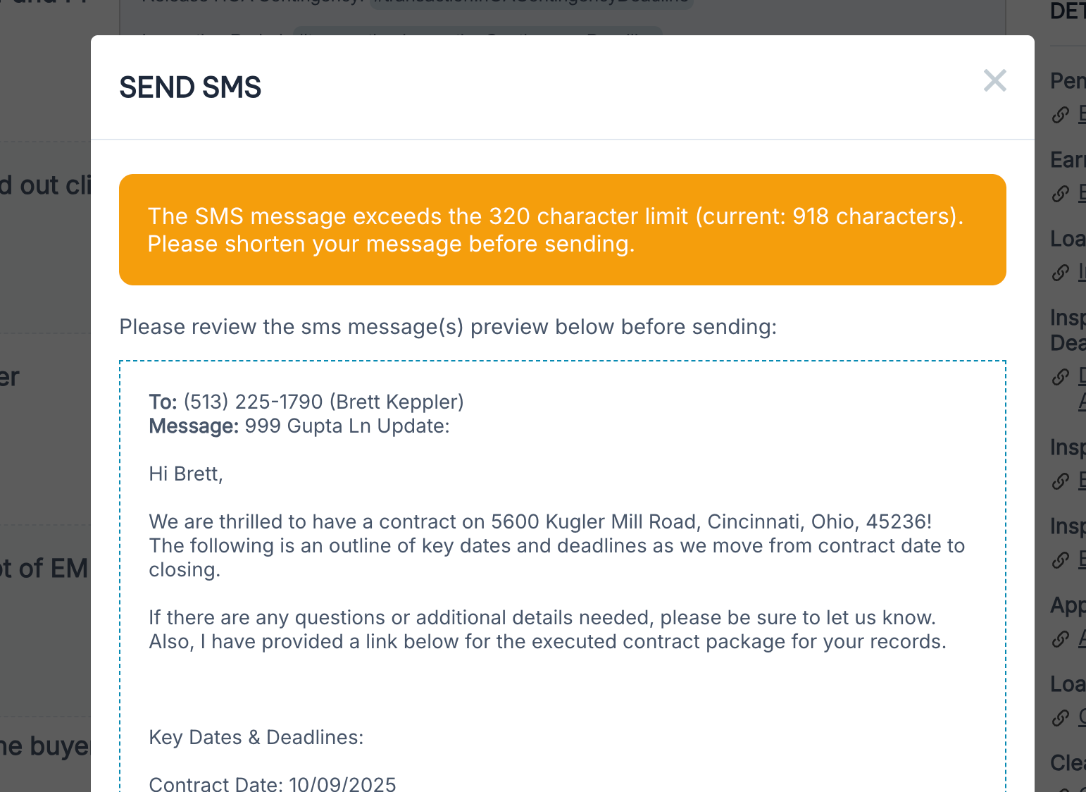 If an SMS message is too long, users will now be informed prior to the SMS message being sent