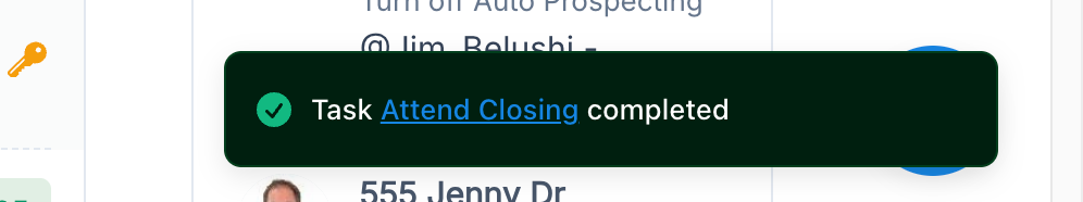 When an action is taken (like task is completed or a note is created), a notification box will appear in the bottom right corner should you wish to go directly to this action to either βundoβ it, or as confirmation that an action was taken.